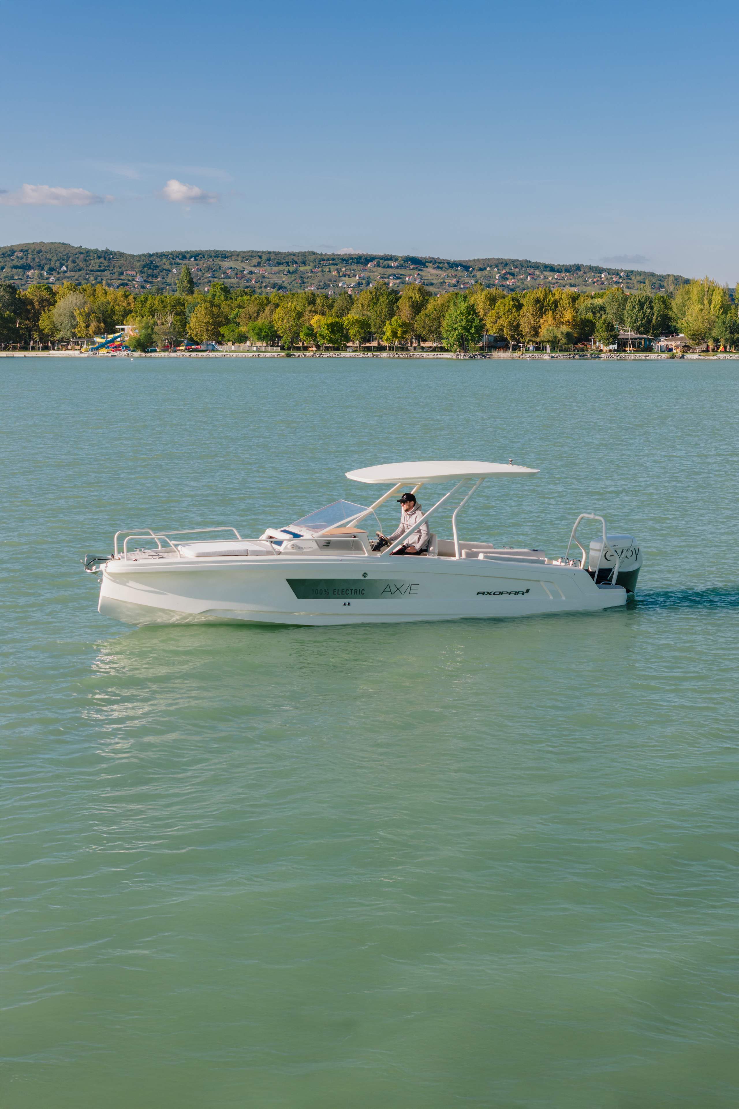 The AX/E 25 is the epitome of innovation and elegance in electric boating. Merging silent cruising with impressive performance, this boat is designed for those who appreciate the finer things in life. Its iconic signature design and trailer-ready versatility make it ideal for exploring new waters with style and ease. The AX/E 25 enhances this experience with a sleek exterior, spacious interior, and advanced technology, delivering both thrilling adventures and effortless comfort. Engineered for both adventure and practicality, the AX/E 25 offers exceptional handling, impressive speed, and unmatched comfort on every journey.