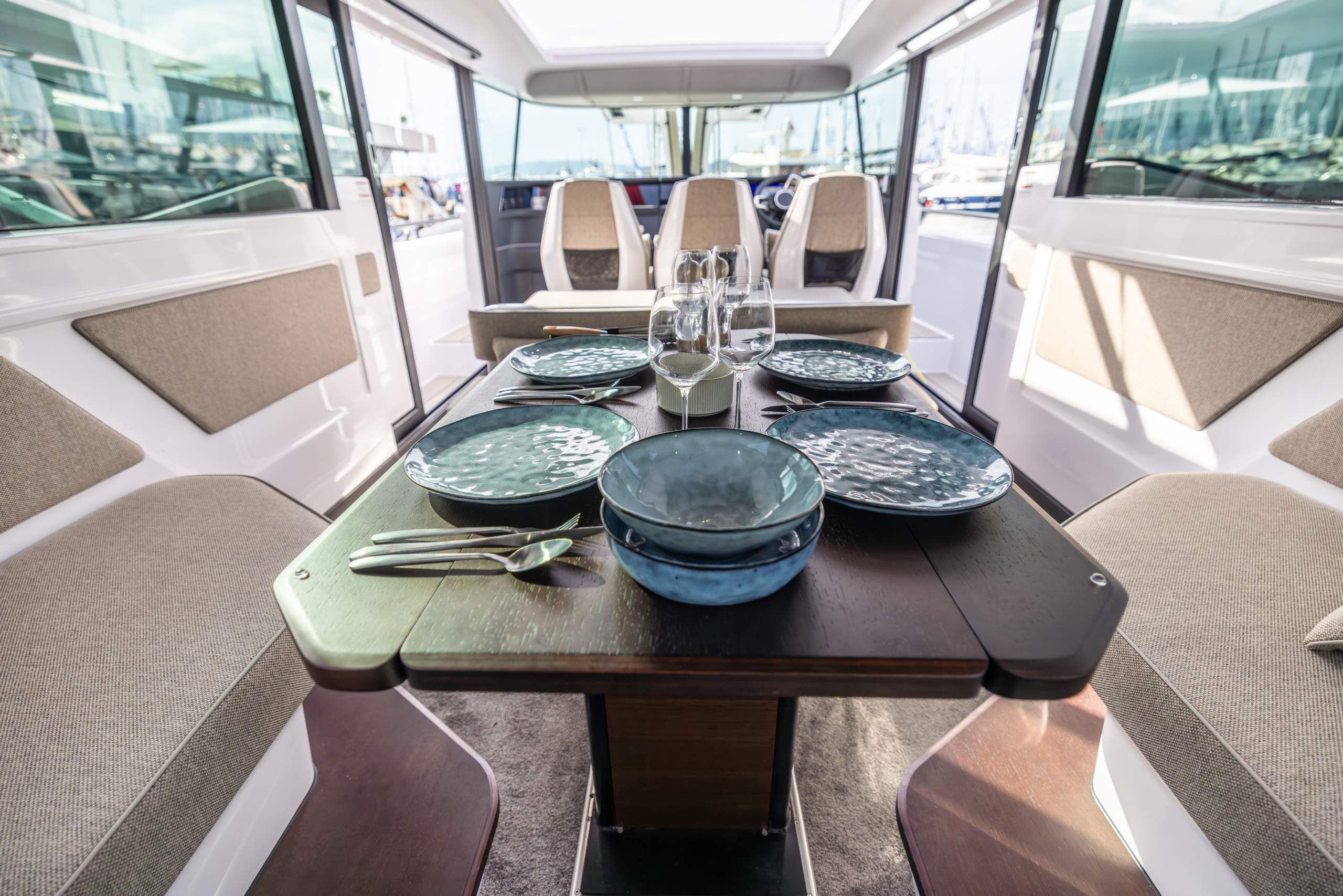 Designed for an outstanding on-water experience—from rainy-day adventures to sun-soaked escapes. Bring your family, invite your friends; with the 45, there’s space for everyone to enjoy the getaway comfortably. The world’s first outboard-powered, fully enclosable walk-around cabin boat in its size class delivers unmatched all-weather cruising. With a fully enclosed cabin and powerful outboards, the 45 lets you go from jetty to open water in a heartbeat.