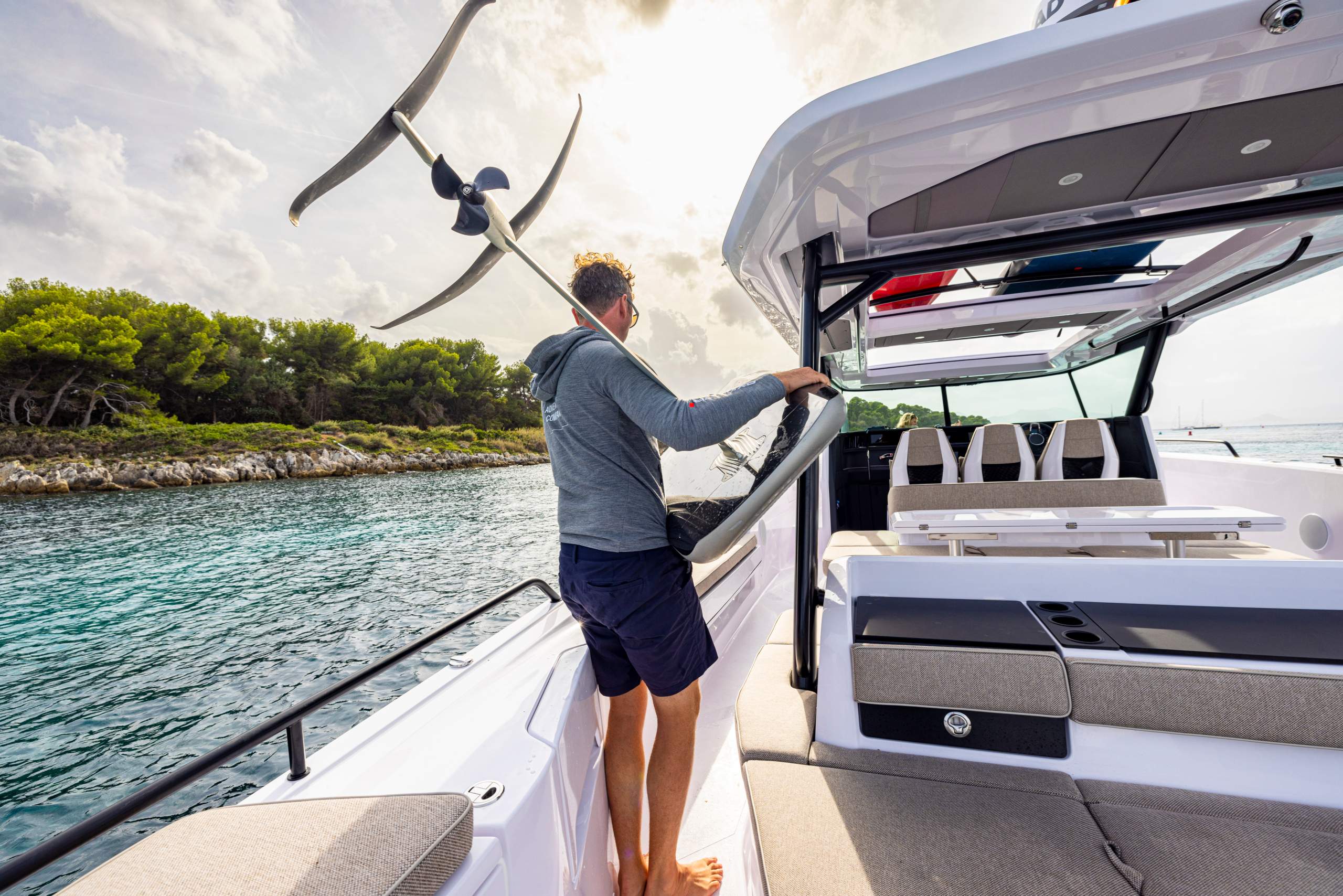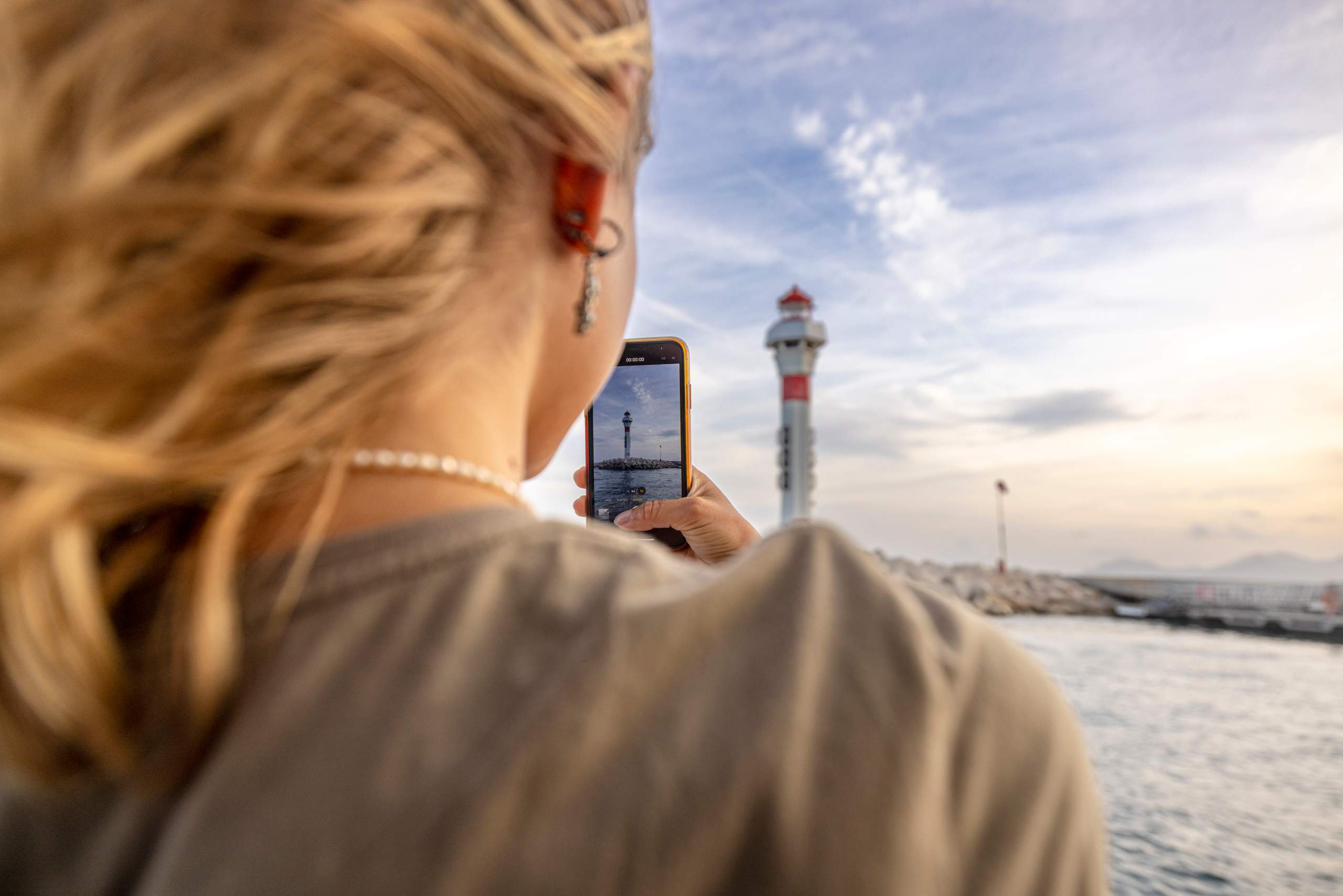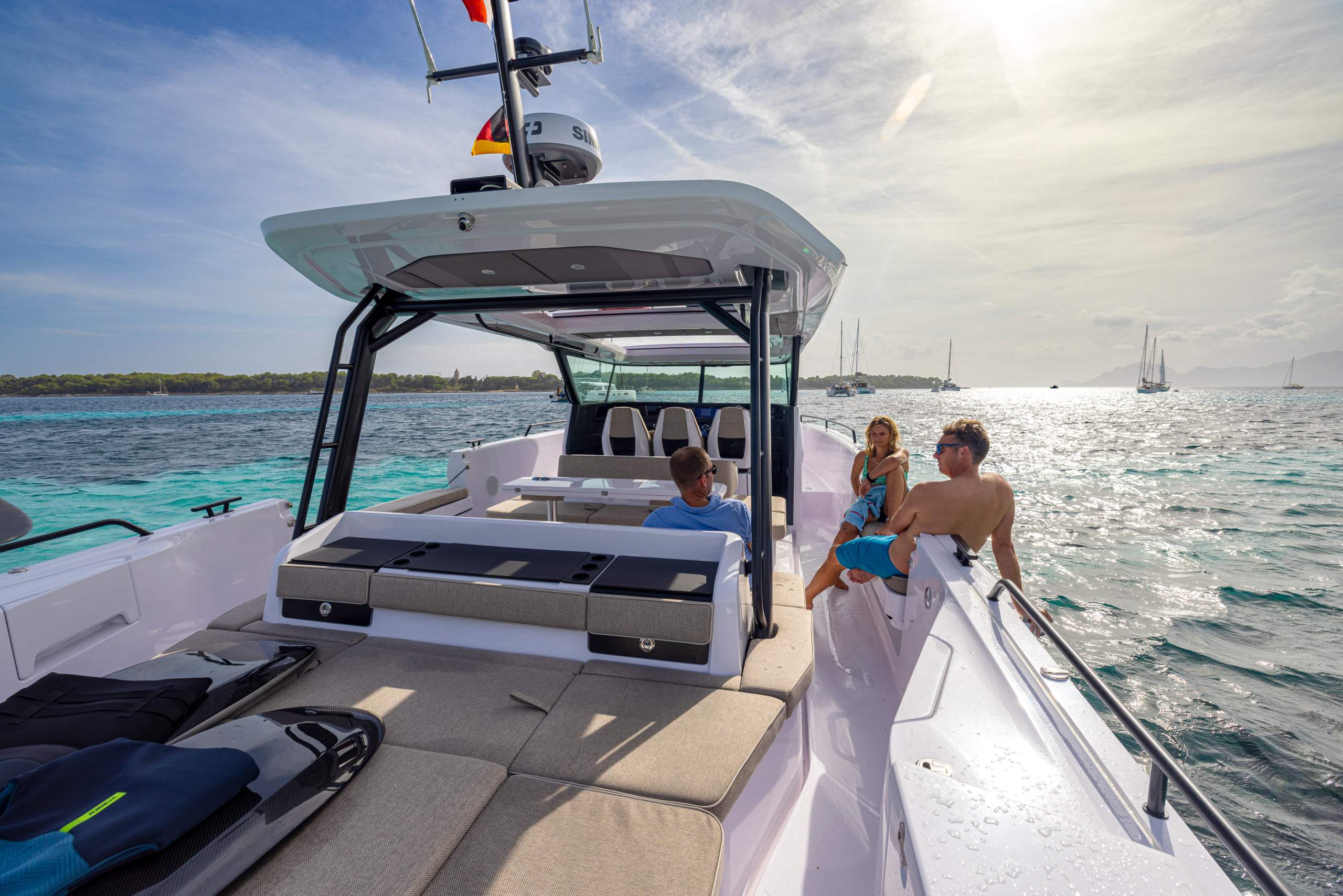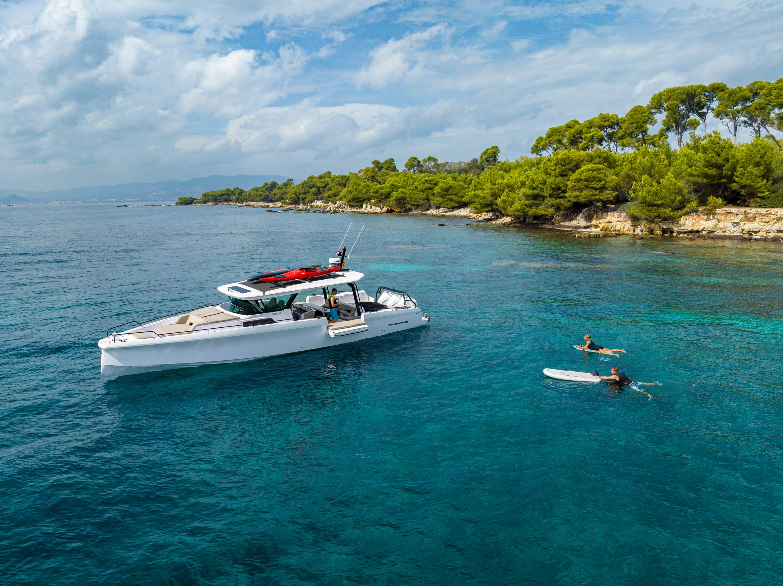 As we boarded the Axopar 45, the excitement was undeniable. We were here to chase adventure and create some awesome content. The rain didn’t bother us since we were well protected in the cabin, allowing us to go boating in any weather. Laughing and joking, we set off, speeding across the waves with our favorite tunes playing. As we had hoped, the weather began to change. The initial gloom lifted, and soon, rays of light began to sparkle on the beautiful waters of the French Riviera.