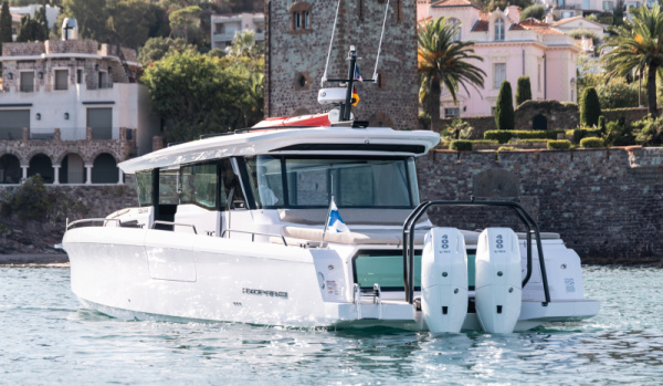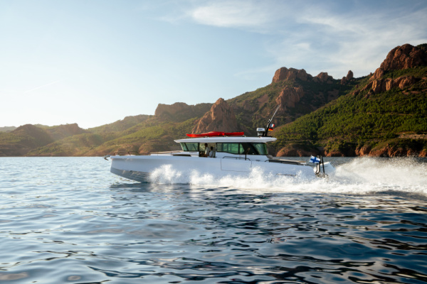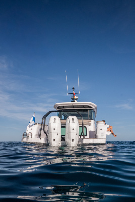 Axopar brings a new update to its flagship range: the Axopar 45 is now available with a twin-engine option, powered by Mercury’s Verado V10 400 hp outboards. This setup underscores the remarkable efficiency of the hull, which is particularly impressive given the boat's substantial weight of 10 tons. This update reaffirms Axopar’s mission to challenge conventions and redefine what a modern recreational boat can be.