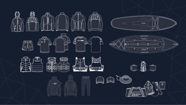 The level of detail and cross-over of materials between the clothing, boats, and water sports gear is truly extensive, representing an exercise of successful collaboration.