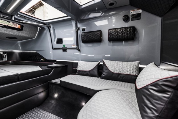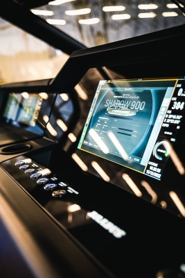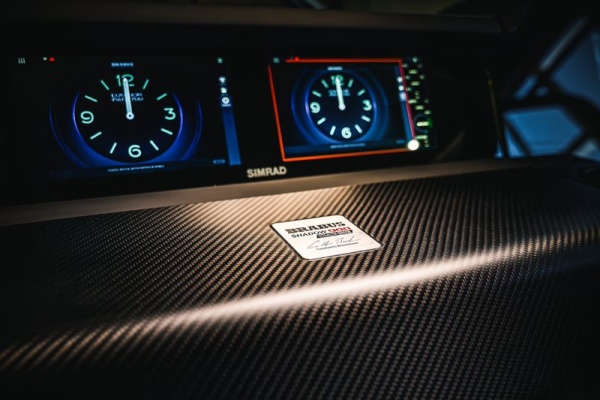 Furthermore, the dashboard features a full HD Simrad dual touch ‘Glass Helm Information Display' for maximum on-screen detail and unprecedented levels of built-in functionality. An updated BRABUS User-Interface, including a digital version of the Panerai timepiece, G-shock monitoring, navigation controls, engine management, on board entertainment, and driving-assist features allows Shadow 900 drivers to take total control of their on-water experiences. Owners that opt for the Extended Navigation package can benefit from an even larger array of functions, including two additional 9” screens, on-board connectivity and a 4G mobile WiFi router, VHF unit with AIS receiver, a Halo20+ radar, 5" touch display with digital light switching for the front lounge and a BRABUS lockbox.