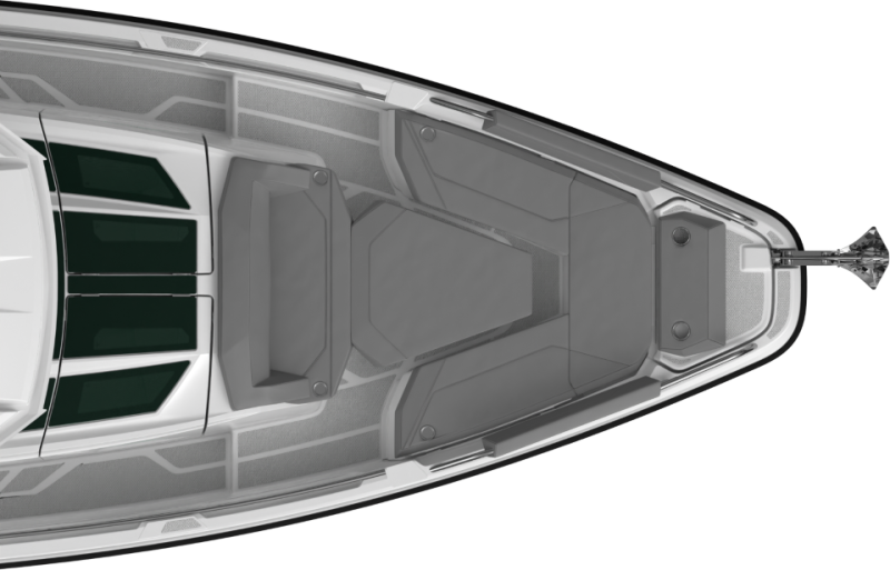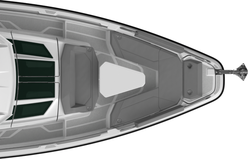 - Combined lounge sofa and bed solution with reclinable backrest for extended usability of the front cabin.