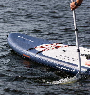 A sleek stand-up paddle board designed for both performance and stability, embodying the high standards of Axopar. Explore coastlines and tranquil waters with our lightweight and super stiff inflatable paddleboard, delivering the ultimate in performance and maneuverability. Adjustable 3-piece paddle, double action pump and waterproof bag included. Easy-to-carry neoprene handle with paddle holder for easy transport.