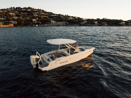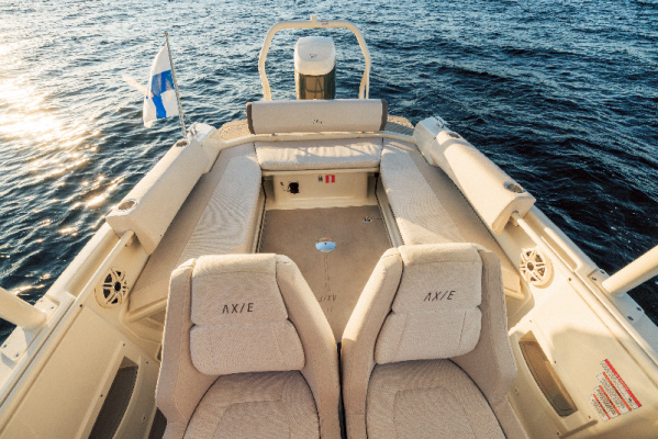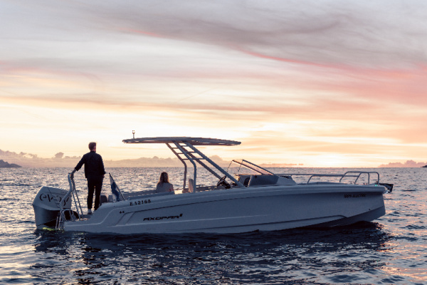 - AX/E 22: Designed for coastal cruising and day trips, this model offers 36 knots of exhilarating speed and a range of +50 nautical miles. Powered by the Evoy Outboard Breeze 120+ hp motor, the AX/E 22 offers an unmatched balance of style and sustainability with its sleek Mediterranean-inspired design and premium eco-friendly materials. The boat’s modularity ensures adaptability for every adventure while delivering a clean, silent, and high-performing ride.