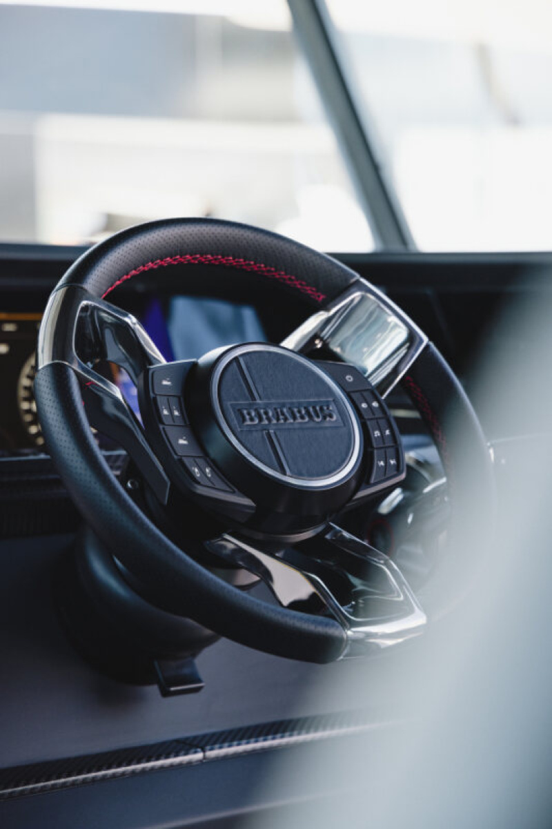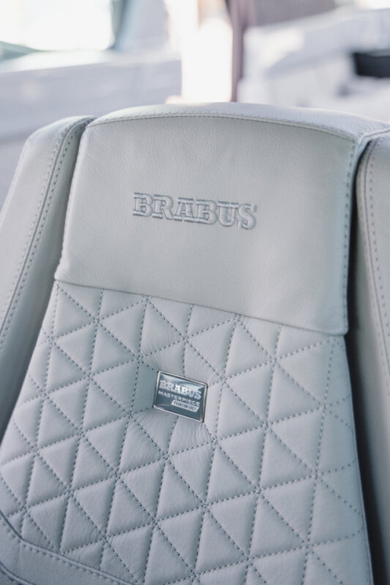 - Exclusive BRABUS quilted upholstery in BRABUS Graphite, BRABUS Sunrise, BRABUS Red, BRABUS Merlot, BRABUS Platinum or BRABUS Ice