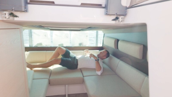 Those going for the U-sofa option on the Cross Top or Sun Top’s aft deck will not only have a perfect dining area on the aft deck that they can transform it into a large size sun bed, but also gain the convenience of two extra on-deck storage boxes and a insulated compartment on top of the backrest, perfect for keeping your beverages on ice.