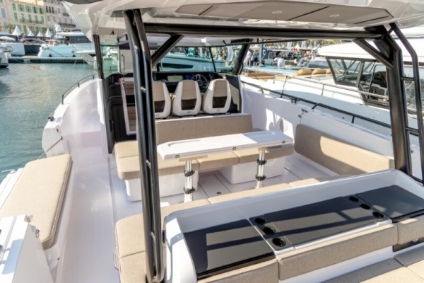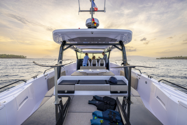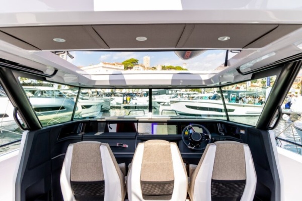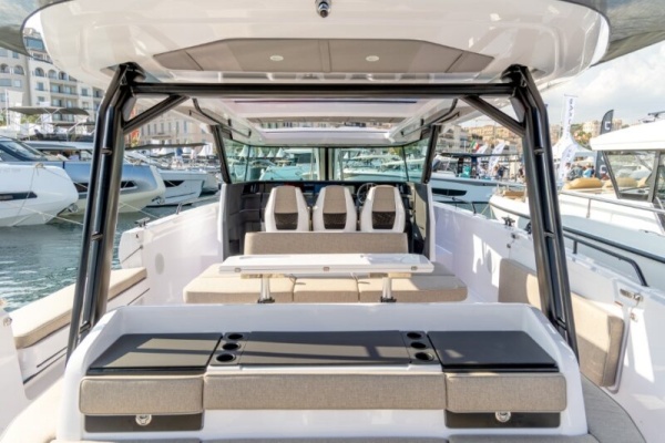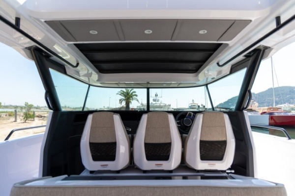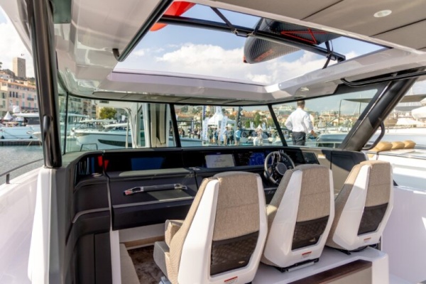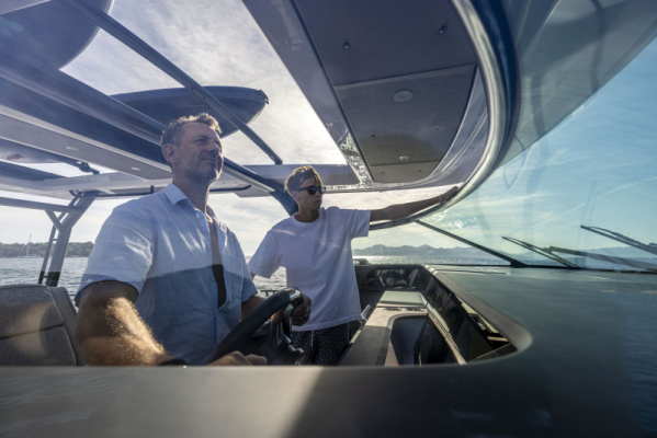 Ideal for a diverse range of maritime enthusiasts, from VIP shuttles and superyacht tender captains to boating enthusiasts craving light protection from the weather, the Cross Top delivers enhanced comfort behind the helm. For those longing to explore further or enjoy longer days out at sea, the wrap-around, negative-angle windshield not only shelters the front row from wind chill and spray but also reduces glare and droplet buildup on the glass.