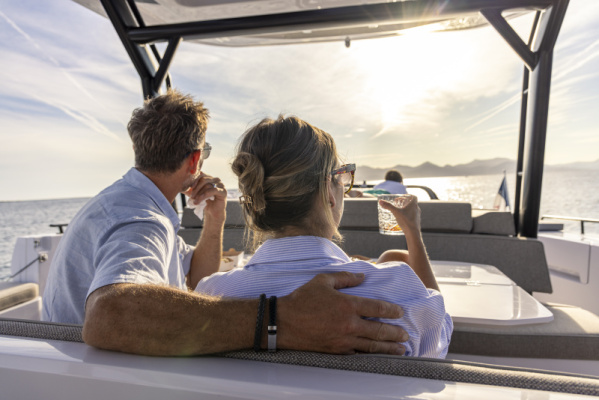 Driven by a usability and safety perspective, we chose to locate an innovative new solution, our raised balcony doors, amid-ships where all the social activity is centered on the boat, extending usable seating space without sacrificing safety or comfort onboard.