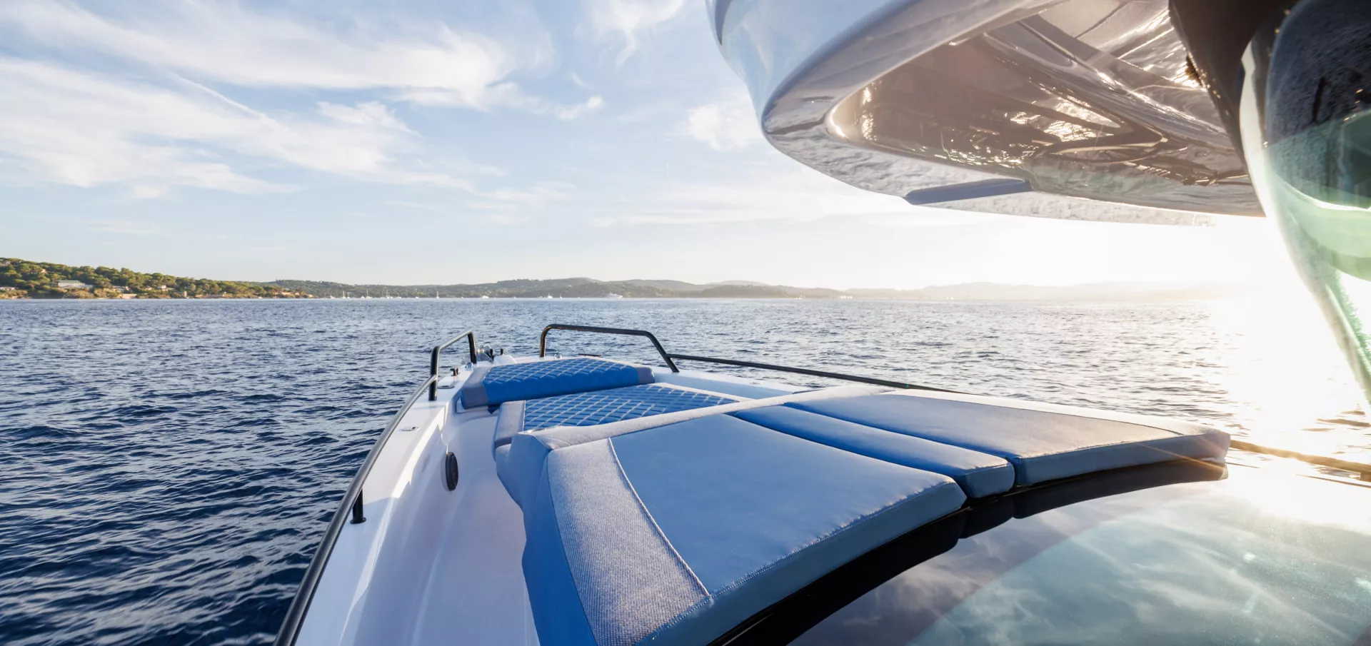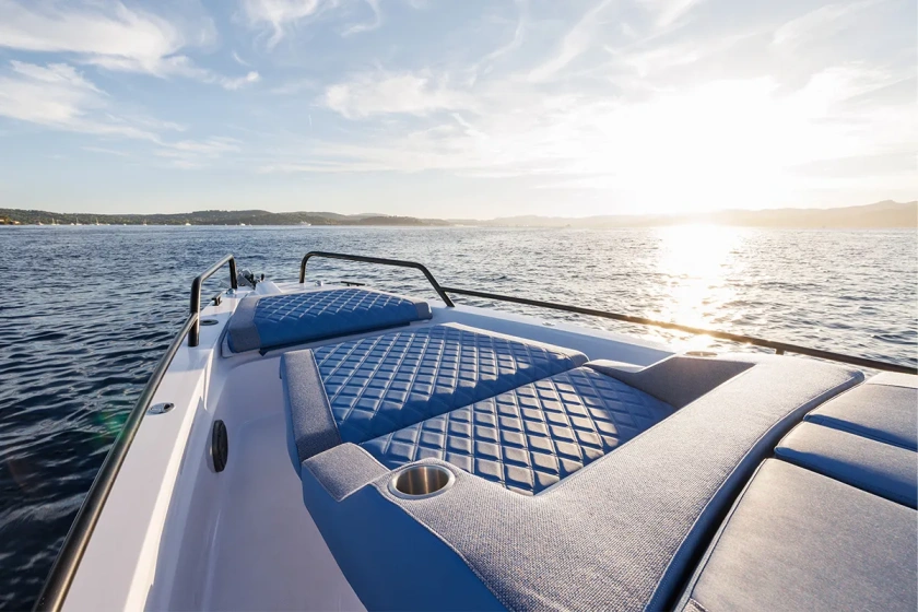 The upholstery consists of exclusive and subtle yet stylish detailing with accentuated patterns and a structured feel of marine fabrics, complimented by contrast-colored pillows and piping details. The fabric keeps the interior and lounging areas at comfortable temperatures, even on the warmest summer days.